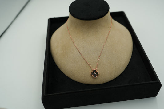 Silver Obsidian clover necklace 15mm clover size 925 silver 18k rose gold plated