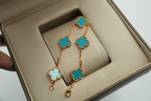 Turquoise 5 motif bracelet 925 silver 18k gold plated
