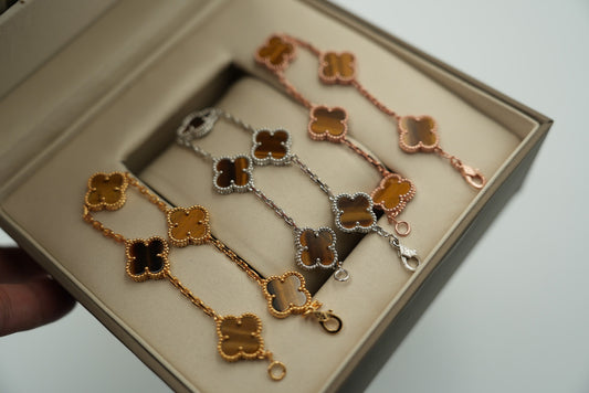 Tiger eye 5 motif bracelet 925 silver 18k gold plated