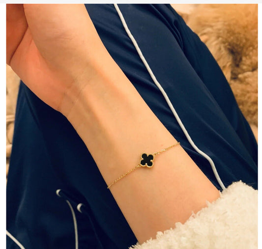 Sweet 10mm Onyx Clover bracelet 925 silver 18k gold plated