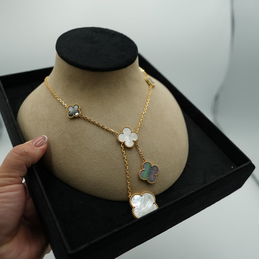6 motif White & Gray mother of pearl clover necklace 925 silver 18k gold plated