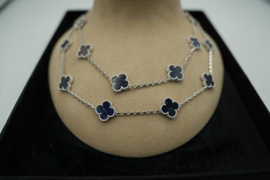 20 motif Pietersite clover necklace 925 silver 18k white gold plated 84 cm long