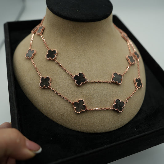 20 motif Silver obsidian clover necklace 925 silver 18k rose gold plated 84 cm long