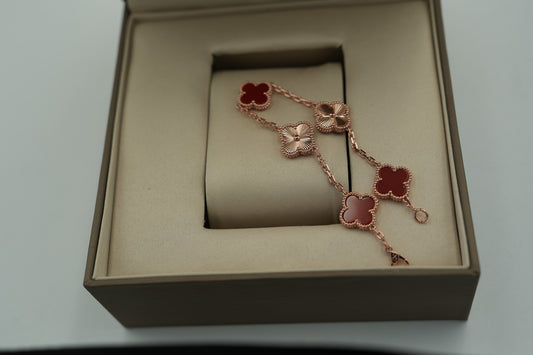 Carnelian & guillioche clover bracelet 925 silver 18k rose gold plated