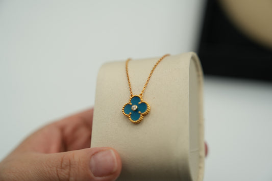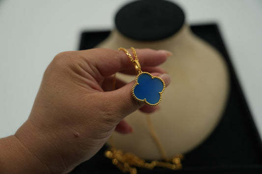 Blue agate cz clover necklace 15mm clover size 925 silver 18k gold plated