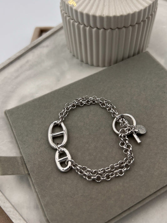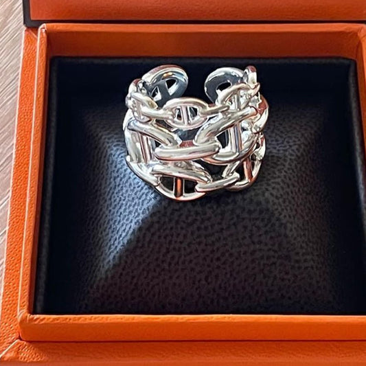 Anchor chain ring 925 silver 18k white gold plated open ring