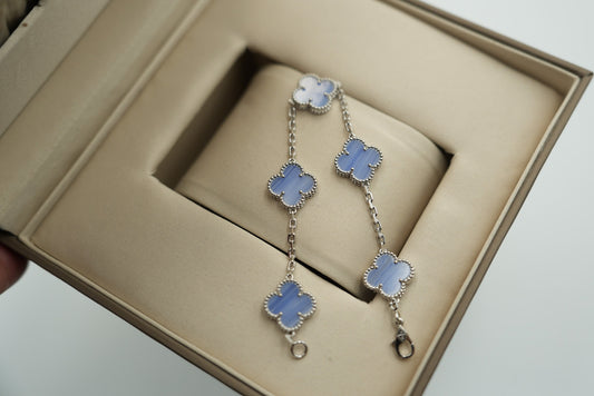 Chalcedony 5 motif bracelet 925 silver 18k gold plated