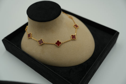 Carnelian 10 motif necklace 925 silver 18k gold plated