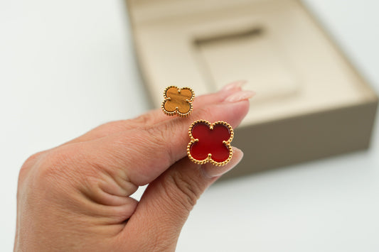 Carnelian & Tiger Clover Open ring 925 silver 18k white gold plated open ring