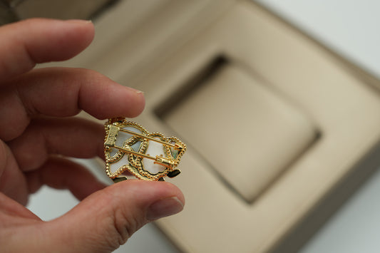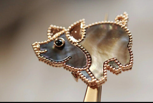 Lucky animals dog brooch 925 dilver 18k gold plated white & gray Mother of pearl