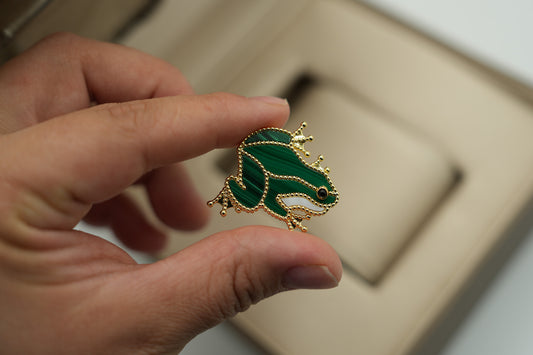 Lucky animals frog brooch 925 dilver 18k gold plated Malachite diuble pin