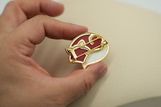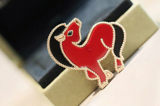 Lucky animals Horse brooch 925 dilver 18k gold plated Carnelian & Onyx