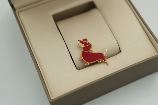 Lucky animals Dog brooch 925 dilver 18k gold plated Carnelian & Onyx