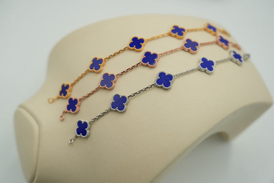 Lapis lazuli 5 motif bracelet 925 silver 18k gold plated