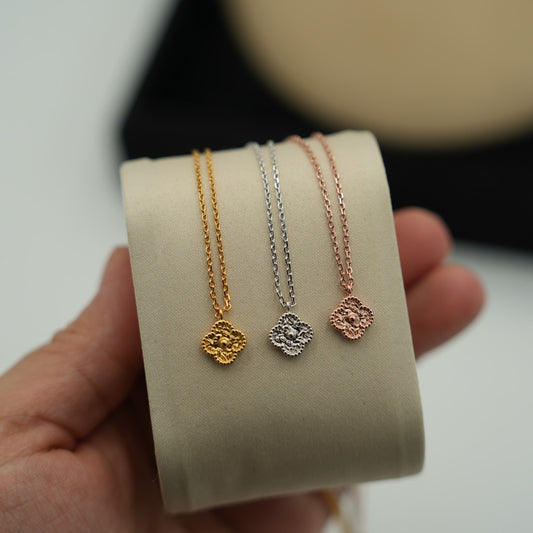 Hammered 16 motif sweet clover necklace 925 silver 18k gold plated