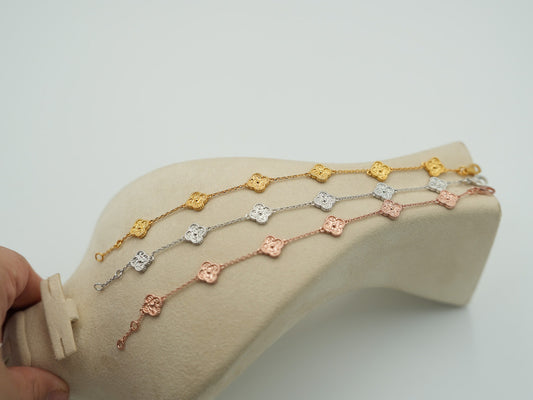 Hammered sweet 10mm clover bracelet 925 silver 18k gold plated