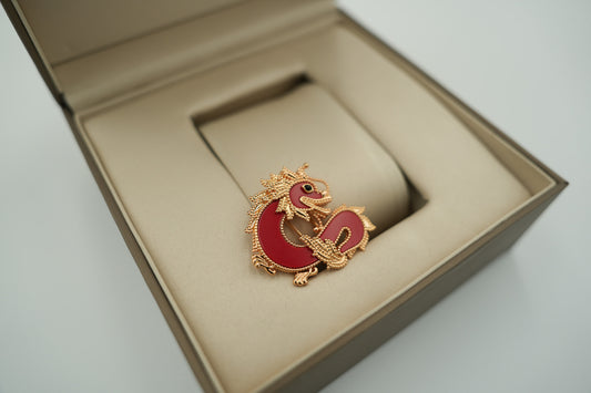 Lucky animals Dragon brooch 925 dilver 18k gold plated Carnelian & Onyx