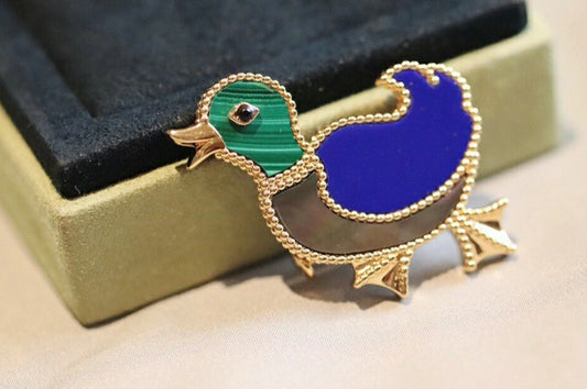 Lucky animals Duck brooch 925 dilver 18k gold plated malachite & Lapis lazuli & gray mop