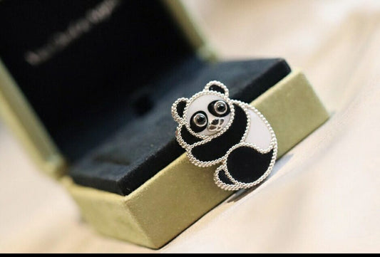 Lucky animals Panda brooch 925 dilver 18k gold plated Agate & Onyx