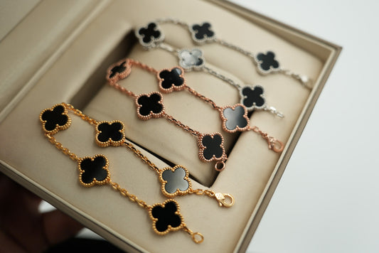 Sweet 10mm Onyx Clover bracelet 925 silver 18k gold plated