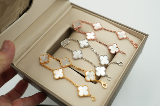 Mother of pearl 5 motif bracelet 925 silver 18k gold plated