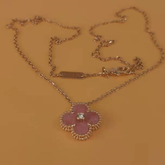 Rhodonite cz clover necklace 15mm clover size 925 silver 18k rose gold plated