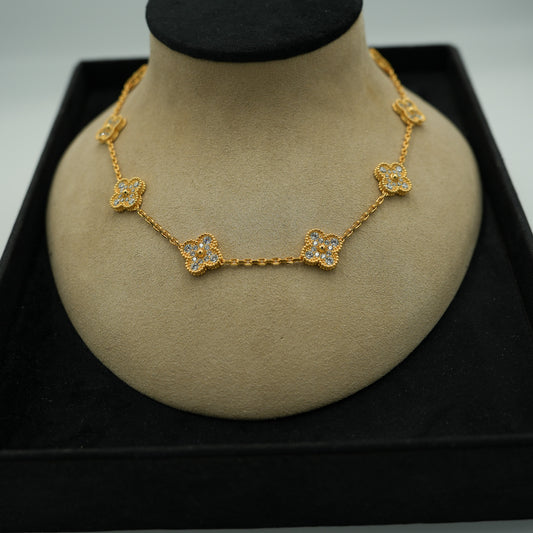 10 motif CZ clover necklace 925 silver 18k gold plated