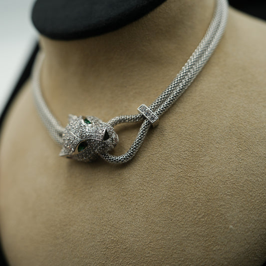 Luxury leopard necklace 925 silver 18k white gold plated panther necklace