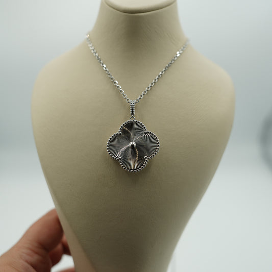 Hammered 16 motif sweet clover necklace 925 silver 18k white gold plated