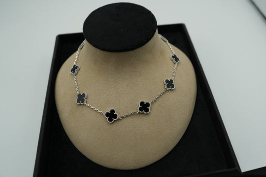 onyx 10 motif necklace 925 silver 18k white gold plated
