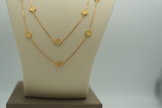 Hammered 16 motif sweet clover necklace 925 silver 18k gold plated