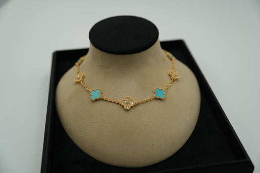 CZ & Turquoise 10 motif necklace 925 silver 18k gold plated