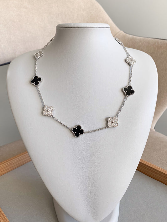 CZ & onyx 10 motif necklace 925 silver 18k white gold plated